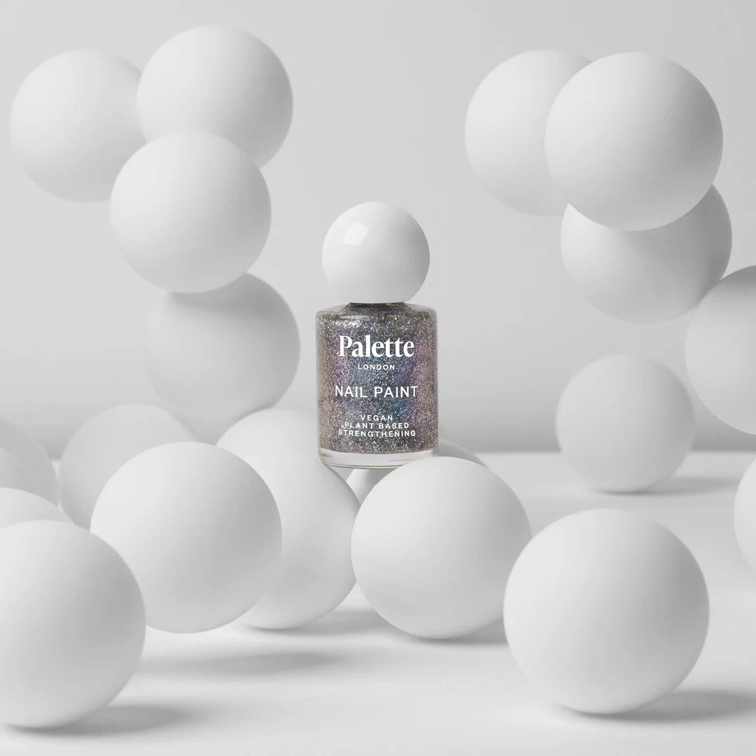 A glitter-intense silver that sparkles like a crystallised rainbow and exudes high-octane joy. Paint on for glamorous evening wear that never goes out of style or for a glitzy accent at any time.